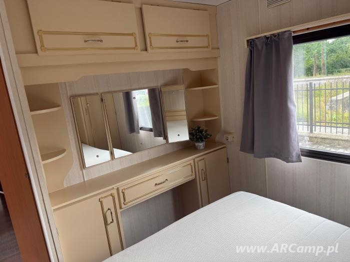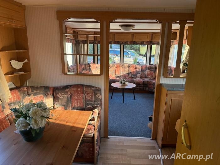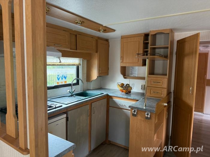 Na wyposażeniu: lodówka, kuchenka gazowa, okap kuchenny, ogrzewanie gazowe, gazowy podgrzewacz wody, trzy sypialnie, łazienka (umywalka, toaleta i fabrycznie przygotowane miejsce do montażu kabiny prysznicowej), podwójne szyby, oraz pozostałe wyposażenie widoczne na zdjęciach.